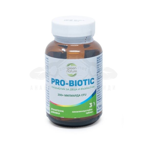 Pro-Biotic di Green Nature è un integratore alimentare studiato per sostenere il normale funzionamento del sistema digestivo e immunitario. Influisce positivamente sui processi metabolici e migliora la funzione immunitaria. È consigliato per ripristinare una microflora batterica sana, equilibrare i livelli di pH dello stomaco, alleviare gonfiore e gas e rafforzare il sistema immunitario. Questo integratore comprende una miscela probiotica contenente sette diversi ceppi probiotici (Lactobacillus bulgaricus, Lactobacillus reuteri, Lactobacillus rhamnosus, Lactobacillus plantarum, Lactobacillus casei, Streptococcus thermophilus e Lactobacillus acidophilus) con un minimo di 200 miliardi di UFC, oltre a 200 mg di ulina a catena corta (prebiotico). Le capsule sono realizzate con ipromellosa e biossido di titanio per garantire la resistenza agli acidi.
