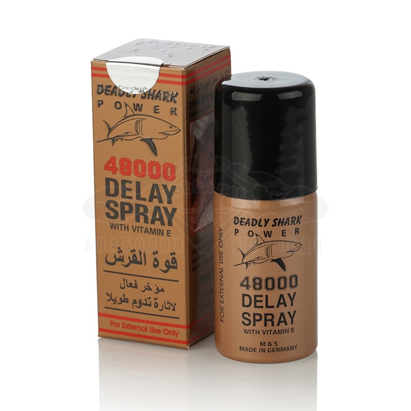 Спреят за задържане Deadly Shark Power 48000 с добавен Витамин Е е специална формула, разработена в Германия, която има за цел да увеличи представянето на мъжете в леглото и даде на жените им многобройни оргазми, тъй като спреят Deadly Shark Power 48000 може да удължи половия акт до 10 пъти повече отколкото е стандартно.