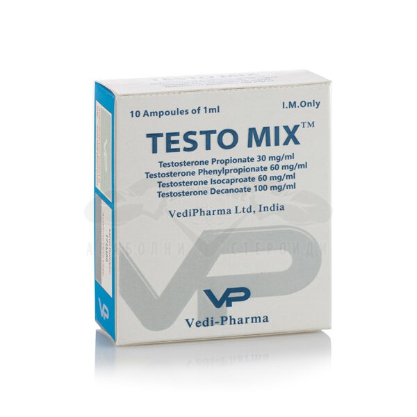 Testo Mix (Testosterone Mix) è una combinazione di Testosterone Propionato 30 mg, Testosterone Fenilpropionato 60 mg, Testosterone Isocaproato 60 mg e Testosterone Decanoato 100 mg.